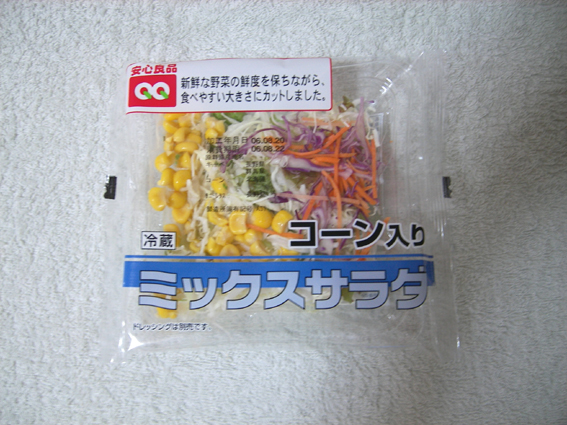 ■短評 ごく一般的な出来合のサラダ。 5種類の野菜が入っており、スーパーで買うと150円ほど。 特別美味しいというわけでもなく、野菜が痛んでいることもない。 ■料理法 ドレッシングはついていないため、別途必要。 プラスチックの容器で、そのままその容器で食べられる。 ■詳細 65g、キャベツ:群馬県・長野県、コーン:北海道、サニーレタス長野県 ■マイリピ ★★★★☆ 1食のうちの1品としては、ちょうど良い量。 個人的には同じ金額でも松屋のサラダの方が好み。