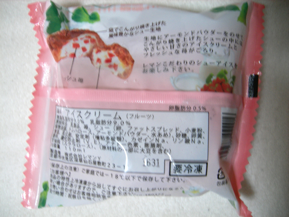 ■短評 イチゴとシューアイスの定番商品。 中のイチゴの量・イチゴの甘さを生かしたアイス、パリパリのシュー、 イチゴの食感も良く、これが99円とは思えないような完成度。 ■料理法 開封。 ■詳細 110ml、(株)レマンY ■マイリピ ★★★★☆ ギリギリまでたっぷり入ったアイスと、シャリシャリイチゴが癖になる。 ヒット商品になりえる可能性大。 だけど、包装状態が悪く(写真だと右上箇所)ずれているため、詰めが甘い。
